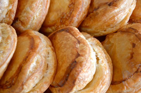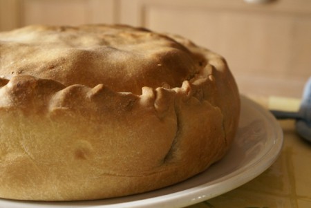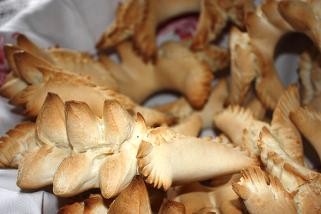 Preparación: amasar harina y manteca, una pica de sal. Disolver la levadura en 50ml. de aigua tibia.