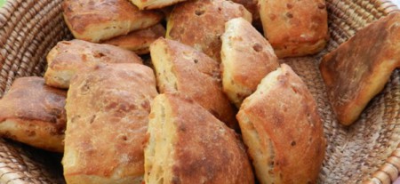 Preparación: 1) amasar bien harina con aigua tibia, 2) tapar la masa con un trapo y ponerlo a descansar 3 horas.